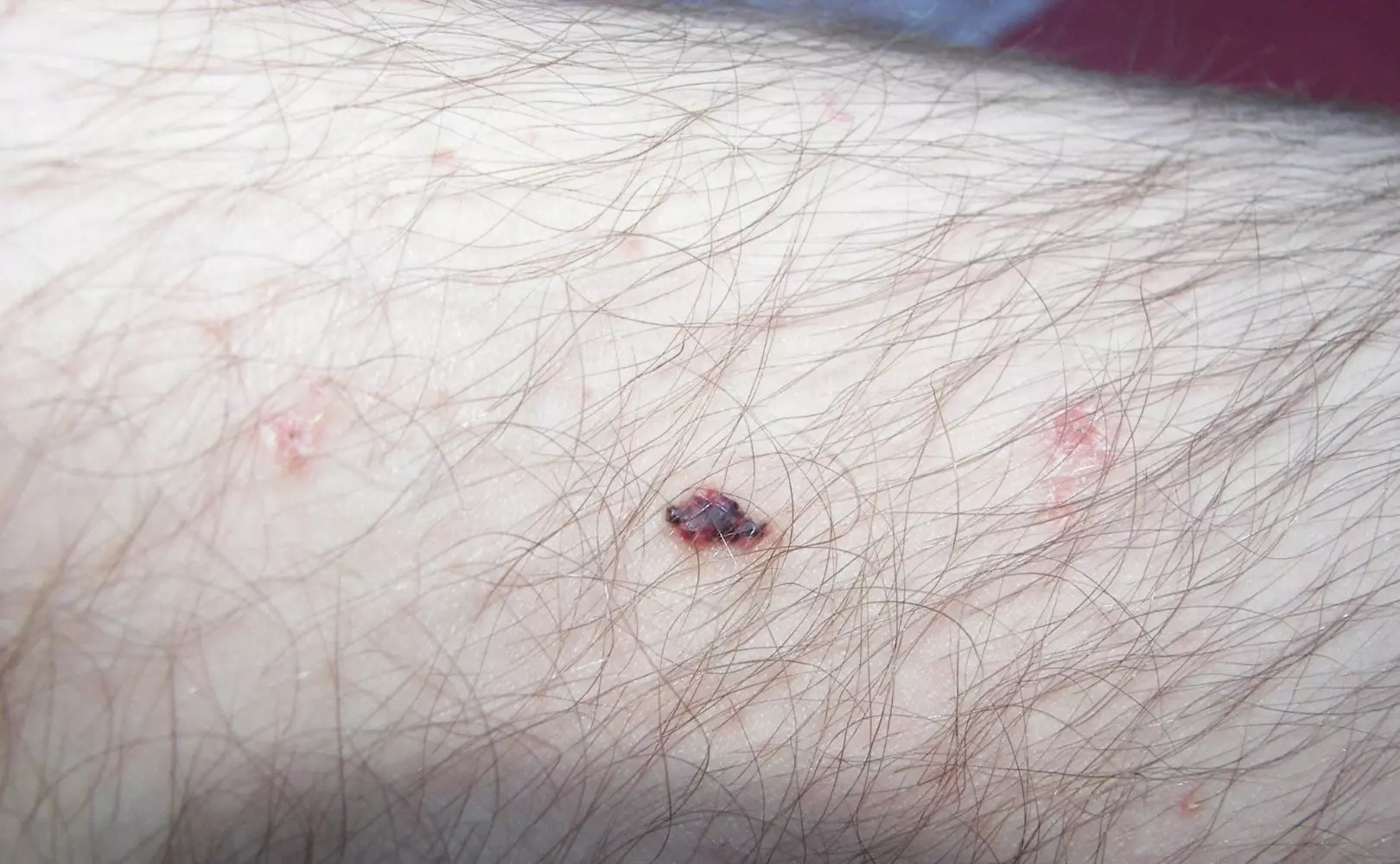 - Wypukłe czerwone punkty lub plamki na skórze